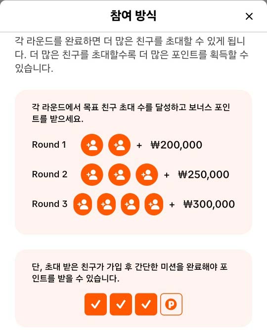 - 초대받은 친구가 성공적으로 캠페인에 참여한 후에는 초대 링크를 다시 클릭하지 마세요.